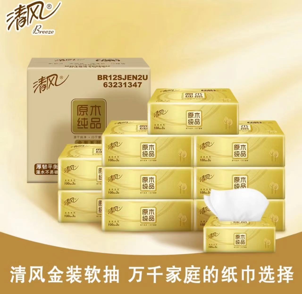 • 清風(fēng) J48E 軟包抽取式面紙 100抽 3層 190*132mm